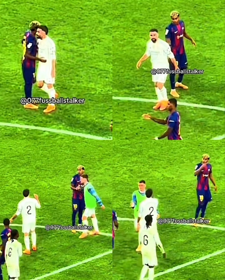 而从球迷实拍视角可见,亚马尔与卡瓦哈尔握手拥抱之后简单沟通 了几句,由此迸发 口角。据马卡报报道,卡瓦哈尔最后对亚马尔说“要是你废话太多,今天有你受的”,亚马尔则喊着“有种出去碰碰”并做手势指向球员通道,同时卡瓦哈尔持续做着“少说话”的手势。随后,两队球员聚在一起迸发 大规模冲突。