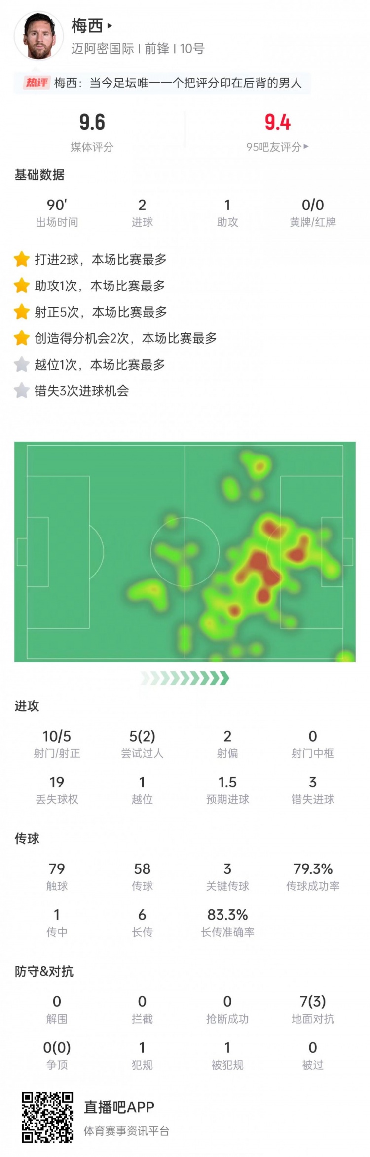 梅西本场赛事 数据: