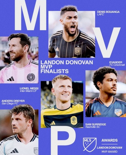 10月24日讯 美职联公布了2025年年度最佳球员候选名单,梅西领衔,足球视频在线观看无插件博安加在列。