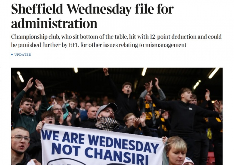 EFL已确认收到通知,并表示虽然扣分是自动执行的,但这“也为谢周三提供了一个机会”,可以“推向成功的出售并在新所有权下确保未来”。已被指定的管理人克里斯-威格菲尔德将负责支付债权人并寻找新买家,不过目前至少有三方有意收购。