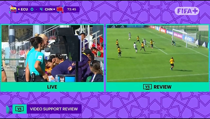 10月24日讯 U17女子世界杯赛 小组赛C组,厄瓜多尔女足U17vs中国女足U17。赛事 第73分钟,24直播免费足球直播.178足球免费直播app下载中国队指导教练员组申请VAR应战 ,认为对手危险区域 内手球运动 。裁判 观看回放后判认定不是十二码球。