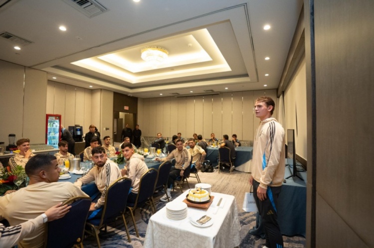 阿根廷队正在征战世预赛南美区,队内中场球员尼科-帕斯在9月8日度过自己的21岁生日,24直播网全队举办仪式为这位球员庆祝生日。