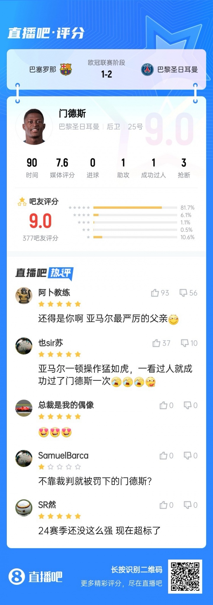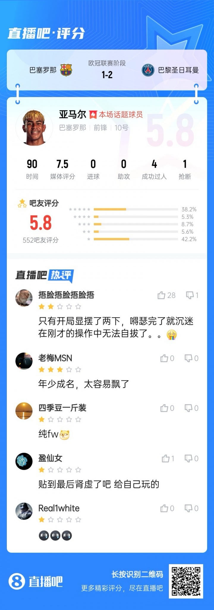 吧友们认为门德斯本场是否限制了亚马尔的发挥?