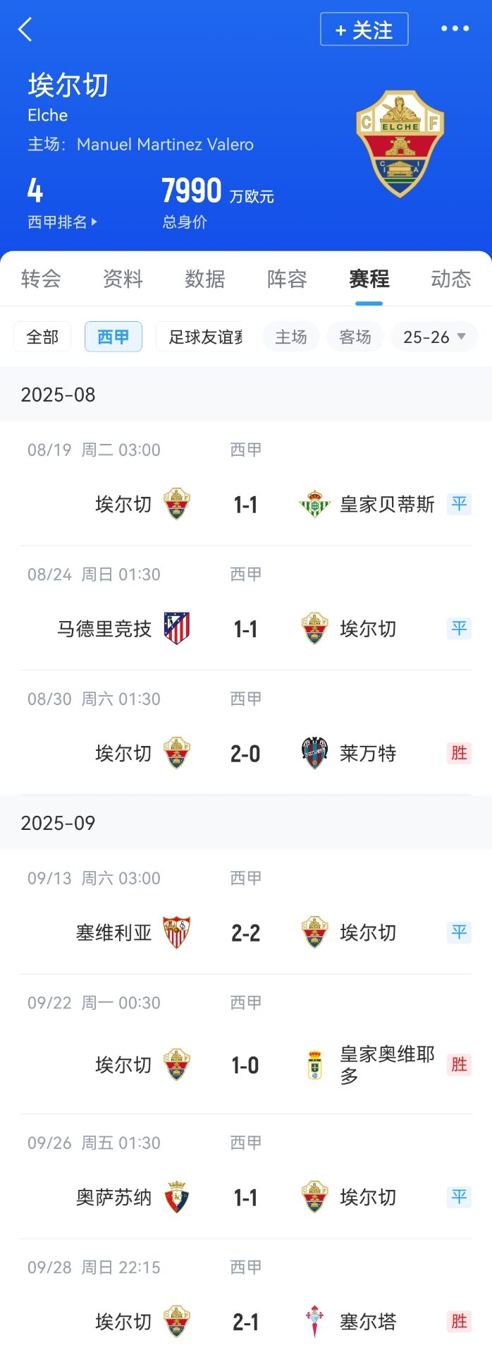 埃尔切赛程↓