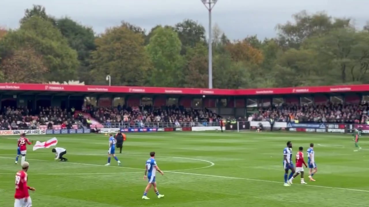 现场视频显示,在这场英乙职业联赛 中,一群手持英格兰旗帜的男子冲入运动活动 场 ,他们似乎穿着背后印有“加里-内维尔是叛徒”的白色连帽衫,其中一名嫌疑人还试图将一面英格兰旗帜插在运动活动 场 中央。安保人员快速 将他们拖离运动活动 场 ,并在赛事 中止 期间处理了此事。