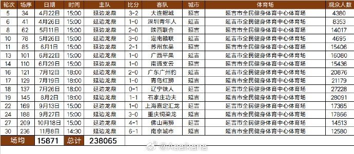 2025中甲职业联赛 延边龙鼎队现场观赛人群 人数统计:合计238065人次,178足球直播免费观看入口雨燕直播免费高清观看足球直播场均15871人。