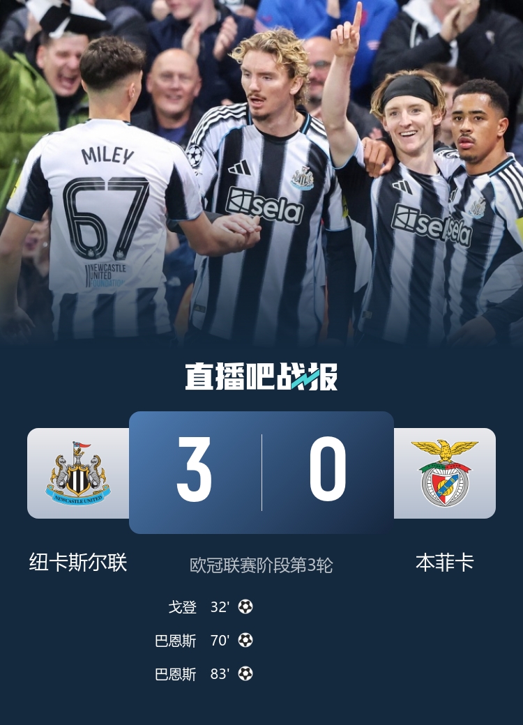 10月22日讯 欧冠职业联赛 阶段第3轮首个赛事 日结束,足球视频在线观看无插件3场英超球队(阿森纳、曼城、纽卡)的欧冠赛事 都成功拿下获胜 且成功零封对手。